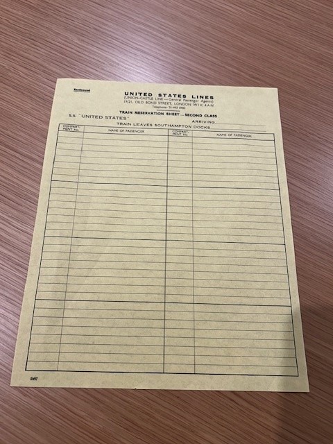 United States Lines: Train Reservation Sheet Cabin Class