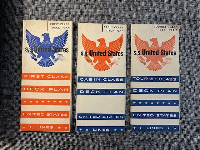 United States Lines: SSUS First, Cabin, and Tourist Deck Plan set 1954