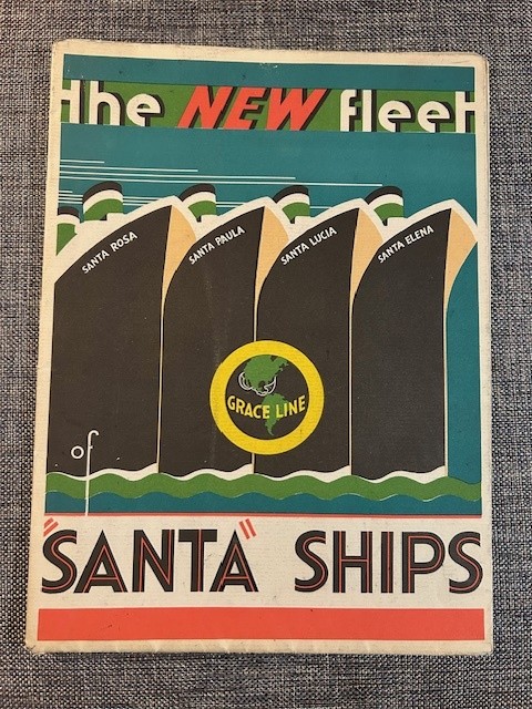 Excellent brochure celebrating the 4 newest Santa Ships of the time: Rosa, Paula, Lucia and Elena. 18 delightful full pages of excellent crisp interior photos … these do not disappoint. Designed by WF Gibbs .. a very good quartet! the Rosa and Paula survived WW2 and resumed service, too be replaced by 2 newer Gibbs ships in1959. very nice condition …. with a blurry agency stamp on the cover. Don’t miss this!